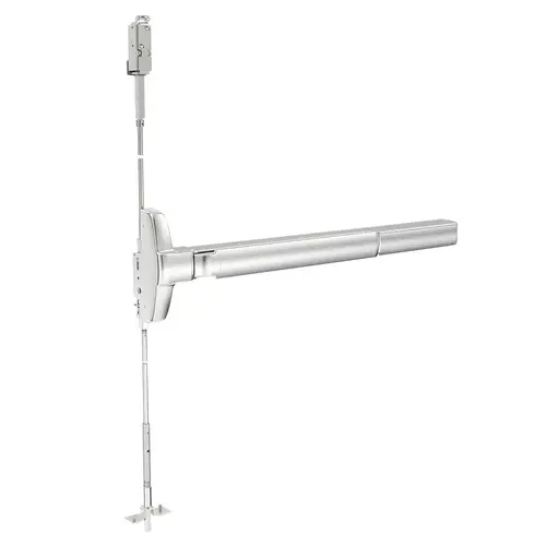 Grade 1 Concealed Vertical Rod Exit Device, Narrow Stile Pushpad, 36" Fire Rated Device, Dummy Function, For Metal Doors, Motorized Latch Retraction, Request to Exit Switch, Bright Nickel Finish, Left Hand Reverse