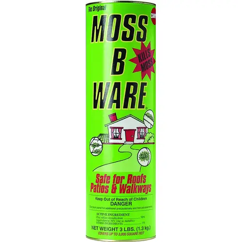 Destroying and preventing moss can extend the life of roofs and improve the condition of patios and walkways. Moss B Ware products will not stain roofs or corrode aluminum and galvanized gutters, when used as directed. And if applied from this shaker container, no other equipment is necessary.