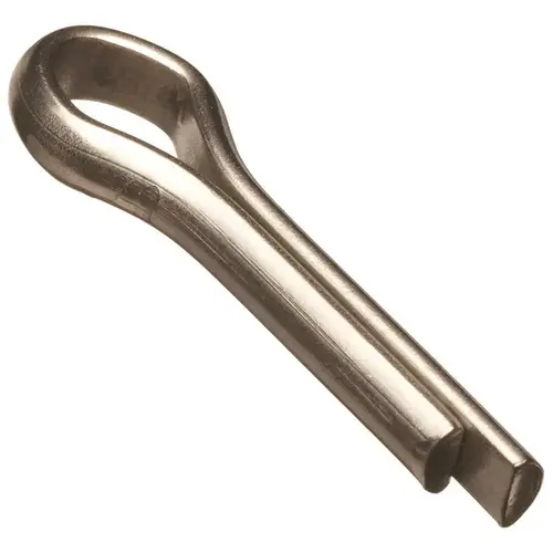 A metal fastener consisting of a pin bent back on itself so as to form a head opposite the 2 ends. It is designed to be slipped through a hole or slot and its ends then spread apart to hold it in place. Cotter pins are easily installed and removed using standard or needle nose pliers.