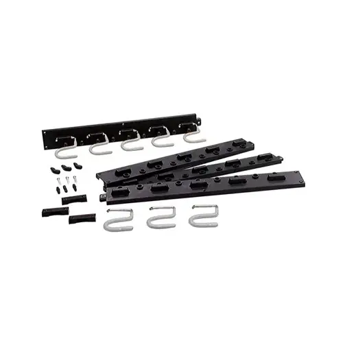 Includes: (4) 16 in Interlocking Rails (12) Moveable Steel Handle Holders and (16) Moveable All-Purpose Utility Hooks