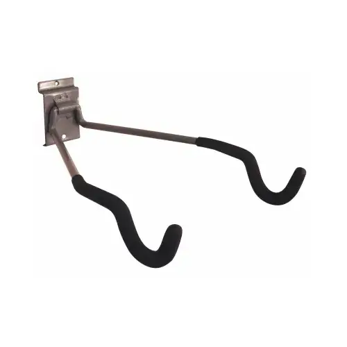 Flips up flat against the wall when not in use. No-Mar vinyl coated. Stores Bikes, also works as a bike repair station. Safe working load of 50 lb.
