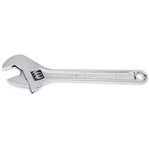 Adjustable Wrench, 12 in OAL, 1-1/2 in Jaw, Steel, Chrome, Non-Cushion Grip Handle