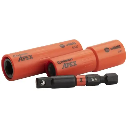 Includes: (1) 1/4 in (1) 5/16 in Covered Sockets (1) 1/4 in Drive Vortex Socket Adapter