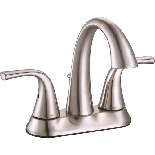 Premier Creswell collection is defined by its innovation, sleek style, and modern design. Choose this Creswell center set faucet to update your bathroom with modern charm. The smoothly sculpted curves of its high-arc spout set the tone for a contemporary decor while maximizing access to your bathroom sink. The lever handles complete this faucets appeal by blending smooth lines into the curved design. An easy-to-use dual handle design provides precise temperature and volume control, producing a low flow of 1.2 GPM that meets modern California Energy Commission regulations. Premier physical vapor deposition (PVD) process molecularly bonds the finish to the faucet, yielding a beautiful brushed nickel finish extremely resistant to scratching, tarnishing, discoloration, and corrosion. This faucet features an innovative pop-up and mounting nuts specifically designed for quick and easy installation on 3-hole decks. Employing ceramic disc technology, Premier ensures smooth, leak-free performance. It is backed by Premier industry-leading Limited Lifetime Warranty.