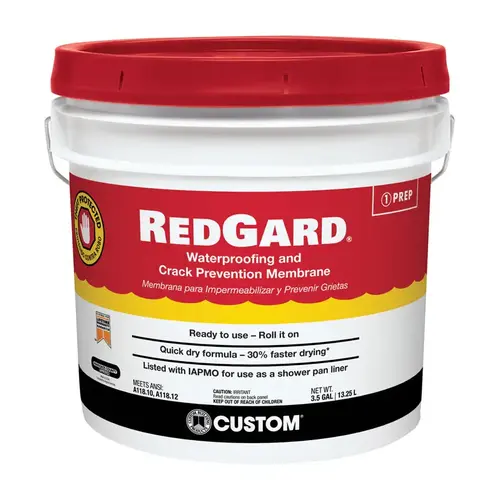A ready-to-use elastomeric waterproofing membrane for both commercial and residential tile and stone application. Suited for interior and exterior substrates, RedGard creates a continuous waterproof membrane barrier with outstanding adhesion and reduces crack transmission in tile and stone floors. It bonds directly to clean metal drains, PVC, stainless steel and ABS drain assemblies and can be used as a slab-on-grade moisture vapor barrier under all types of floor coverings.