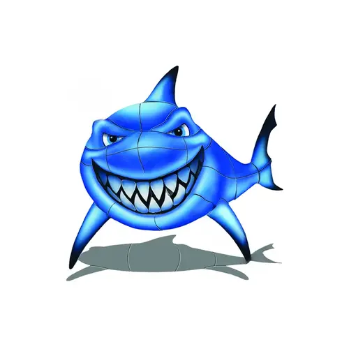 Custom Mosaics, PORC-SKF77/SH Game Fish Collection Designed Mosaics; Gotcha Shark with Shadow Design, 37 Inch x 37 Inch, Porcelain