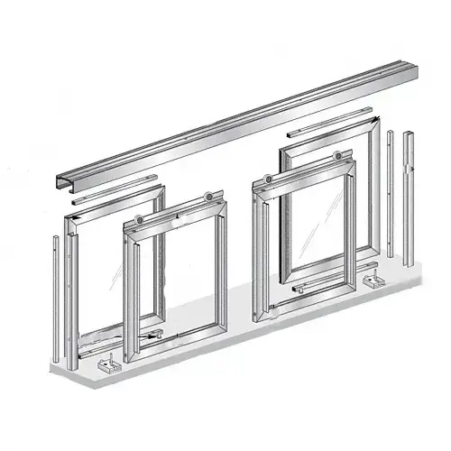 NOTE: These Horizontal Sliding Pass-Thru Assemblies are recommended for interior application only. Each assembly is sold without glass, and includes two kinds of glazing vinyl: for 3/16" (5 mm) or 1/4" (6 mm) glazing. All assemblies are ordered by the frame size, see installation guide for recommended deductions. Frame members are color coded to facilitate assembly and glazing.
