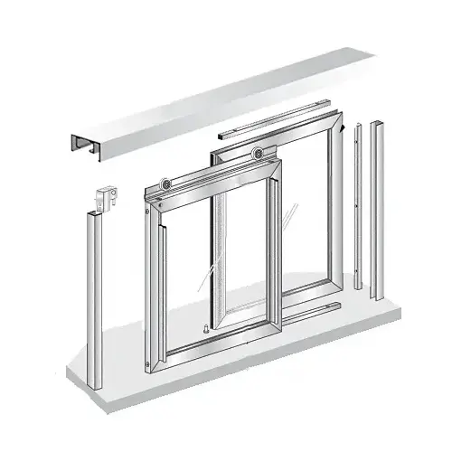 NOTE: These Horizontal Sliding Pass-Thru Assemblies are recommended for interior application only. Each assembly is sold without glass, and includes two kinds of glazing vinyl: for 3/16" (5 mm) or 1/4" (6 mm) glazing. All assemblies are ordered by the frame size, see installation guide for recommended deductions. Frame members are color coded to facilitate assembly and glazing.