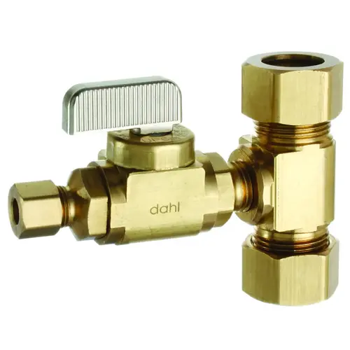 DAHL mini-ball Tee Valve Kit, 5/8 x 5/8 x 3/8 in Connection, Compression Connection, Number of Ports/Ways: 3, Body Material: Brass, Nickel