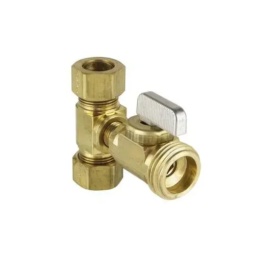 DAHL mini-ball Tee Valve Kit, 5/8 in Connection, Compression x Compression x Male Hose Connection, Port Size: 1/2 in, Number of Ports/Ways: 3, Body Material: Brass, Nickel