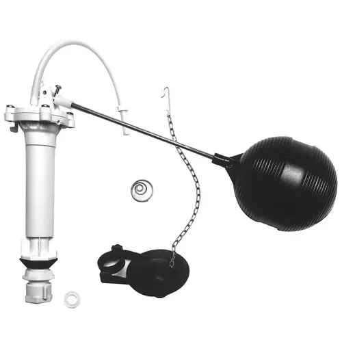 The Danco toilet tank repair kit has everything you need to replace the fill valve, flapper, rod and float. This toilet repair kit will hold up in high-use areas, making it perfect for most applications. The universal design will fit most toilets.