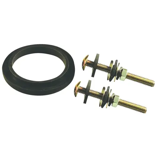 Replace worn tank-to-bowl bolts and gaskets with this Danco kit, it is complete and ready to go. It includes durable tank bolts and a sponge rubber spud gasket. Installing new parts will keep the toilet tank solidly attached and prevent leaks between the tank and the bowl.