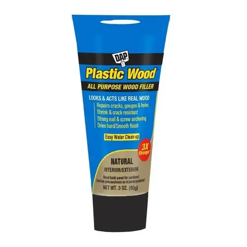 DAP plastic wood is a high-quality, latex-based wood filler formulated to match various wood finishes from a natural pine to dark walnut and several shades in between, including white. DAP's plastic wood is the ideal choice whenever you need to repair cracks, gouges, holes and other surface defects on furniture, woodwork, molding, cabinets, paneling, plywood, windows, doors and even painted surfaces.