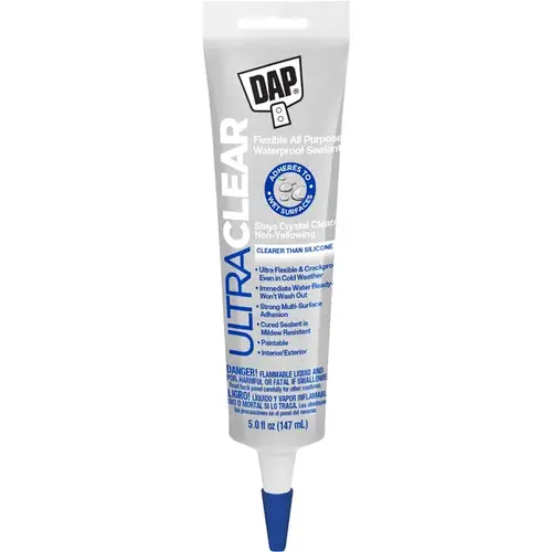 Premium rubberized ultra flexible, ultra clear sealant for sealing and patching a wide variety of surfaces for durable 100% waterproof seal.