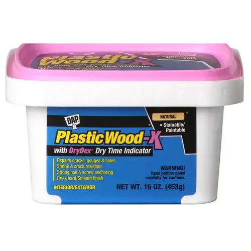 Plastic Wood-X kit dry time indicator goes on pink and dries natural. It is easily cleaned with soap and water. Ideal for both interior and exterior projects.