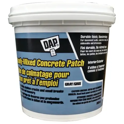 DAP Bondex concrete patch is a ready to use material for the repair of holes, cracks and other imperfections in concrete or masonry surfaces. The product is excellent for tuck pointing masonry and brick work. It may also be used as a glue to join broken pieces of concrete or brick. The material dries to a concrete-gray color.
