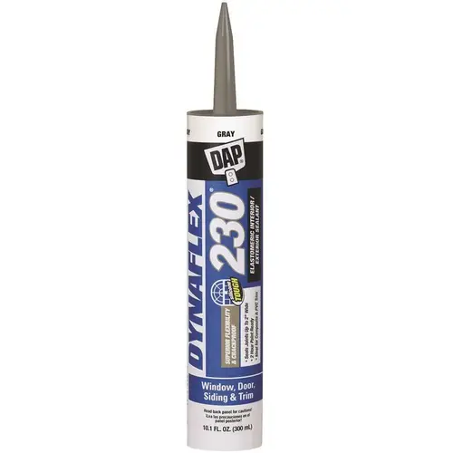 DAP DYNAFLEX 230 100% waterproof window, door, siding and trim sealant is a premium elastomeric sealant with silicone like toughness to withstand the elements. Combines outstanding durability, adhesion and flexibility with easy tooling, paintability, low odor and water clean-up. Highly flexible to handle joint movement without cracking, crumbling or losing adhesion Ideal for sealing around window and door frames, siding and trim both inside and out.