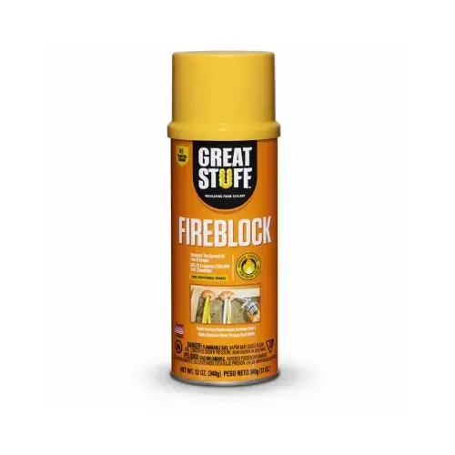 Great Stuff, 12 OZ, Fire Block Insulating Foam Sealant, Helps Impede The Spread Of Fire & Smoke Through Service Penetrations, Such As Pipes, Cables & Ducts, Tested According To ASTM E84, ASTM E814 Ul1715/ Recognized As An Alternative Fire Blocking Material, Bright Orange Colored Foam For Visual Inspection, Fills, Seals & Insulates Gaps Up To 3/4" With An Airtight, Water Resistant Bond.