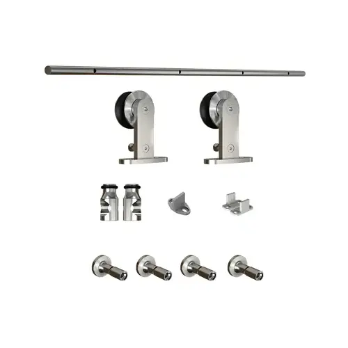 Modern design, decorative interior steel sliding door track kit. For openings up to 36 In. wide. Accommodates single doors with a thickness of 1-3/8 In. and 1-3/4 In., with a weight capacity up to 200 Lb. (pound). Spacers fasten track to the wall. Door stops use set screws for adjustment. Kit includes: (1) 72 In. track, 2 top mount hangers, 4 spacers, 2 door stops, 1 single floor guide, 1 double floor guide. To accommodate openings over 36 In. wide, use sliding door track adaptor, Model No. N187002 (sold separately).