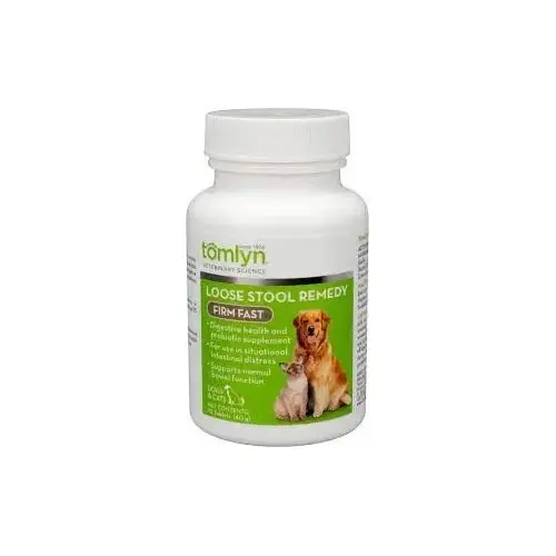 Help make your furry friend regular again with Tomlyn's Firm Fast Loose Stool Remedy Dog & Cat Supplement. This formula is available in syringe or tablet forms and is designed to help absorb the water from loose stools, while also soothing the intestinal lining. It also features a probiotic, which can help move bad bacteria and support your dog's immune system. You can use this supplement after loose stools are seen, or you can use it during situations that can result in loose stool, like traveling and boarding. Key Benefits - *Formulated to reduce the amount of water in loose stools.