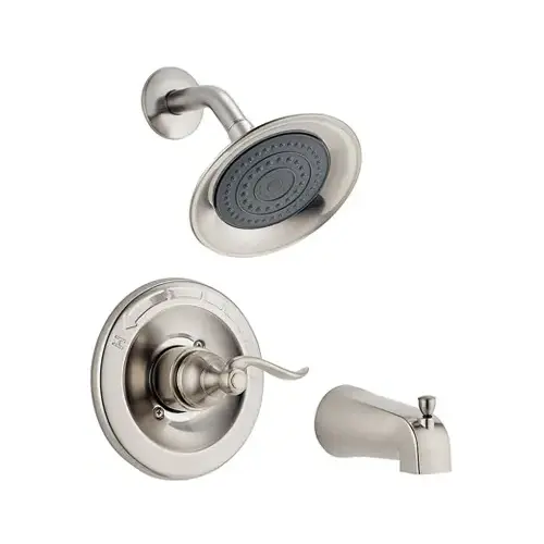 DELTA Bathtub and Shower Faucet with Valve, Showerhead Type: Single Function, Showerhead Connection Type: IPS, Showerhead Flow Rate: 1.75 gpm, Showerhead Width: 2-1/2 in, Spray Settings: 1, Tub Spout Connection Size: 5-1/4 in, Lever Handle, Number of Handles: 1, Brushed Nickel, Suitable for: Delta R10000-UNBX Tub, Shower Valve Body