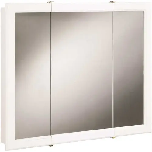 White Gloss Tri-View Medicine Cabinet features a durable white gloss finish. The cabinet has a dual shelf design and concealed hinges. Ample storage space and a large mirror.