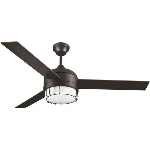Incorporate the efficient and clean-lined design of the Ajax Ceiling Fan into your modern or industrial-inspired living space. Crafted of steel with 3 flat-edged blades, the Ajax fan is finished in a robust oil rubbed bronze and features a simple wire cage wrapped around a round frosted glass shade. Coordinate your distinct style with reversible fan blade color options in dark mahogany or light maple. An included energy efficient LED light kit will help brighten your abode.