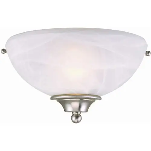 The Design House 511584 Millbridge 1-Light Half-Sphere Wall Sconce is made of formed steel, alabaster glass and finished in satin nickel. This sconce™s petite design mounts seamlessly to the wall without a chain or visible wires and the glass shade provides a soft diffusion of light. This 1-light wall mount is rated for 120-Volts and uses (1) 60-Watt candelabra bulb or LED equivalent. Measuring 6 in. (H) by 10.5 in. (W), this 1.5 lbs. fixture can be mounted facing up or down depending on location and preference. Clean lines and sleek details add a modern accent in a bathroom. The Millbridge collection features a beautiful matching pendant, chandelier, ceiling mount and vanity light.
