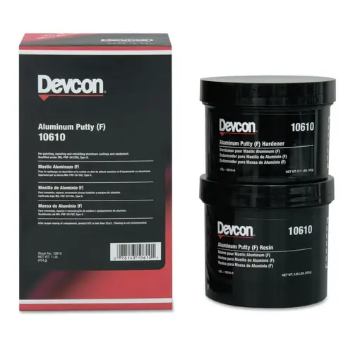 Devcon 10610 Aluminum Putty (F) Kit, 1 lb, Tub, Includes Hardener and Resin