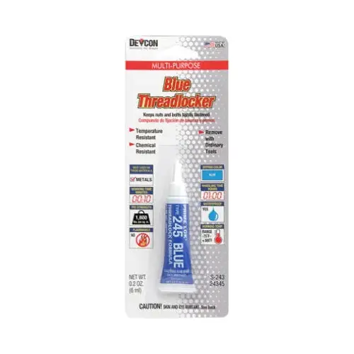 An anaerobic thread-locking material that cures between engaged threads to form a more secure assembly. Resists leaks, shocks and vibrations. Prevents nuts and bolts from loosening, corroding or rusting and still able to be removed when needed.