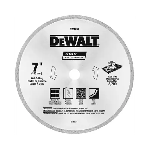 Ideal for both wet and dry tile and stone cutting, DeWALT HP tile blades features a high-performance diamond matrix that delivers long life and expedited, chip-free cutting. A thin kerf helps to increase speed while minimizing dust.
