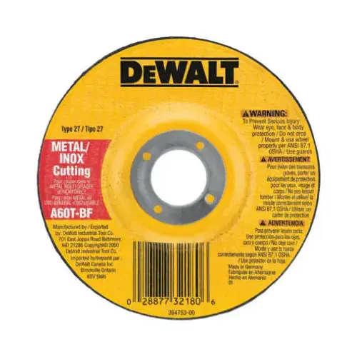 For use with grinders. 0.045 in blade thick, Type 27, A60T grit is designed for fast cutting in all types of ferrous metals.