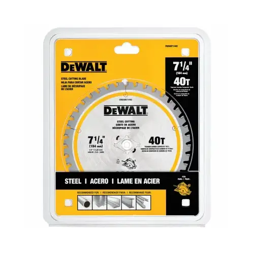 DEWALT Circular Saw Blade, 7-1/4 in Dia, Cutting Edge Material: Carbide, Number of Teeth: 40, Arbor Size: 5/8 in, Steel, Applicable Materials: Metal, Suitable for: Handheld Circular Saws