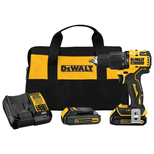 Includes: (1) DCD708 20 V MAX Brushless Compact 1/2 in Hammer Drill/Driver (2) 20 V MAX Lithium-Ion Batteries (1) DCB107 Charger (1) Belt Clip (1) Carrying Bag