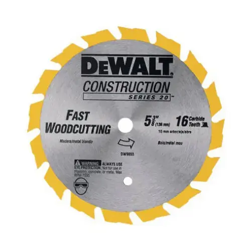 DEWALT DW9055 Circular Saw Blade, 5-3/8 in Dia, 10 mm Arbor, 16-Teeth, Carbide Cutting Edge Anti-Stick