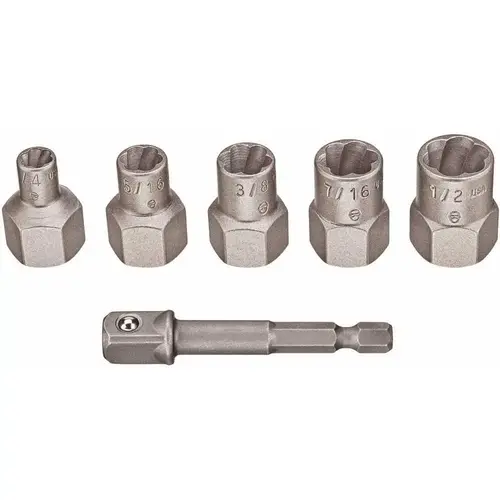 MAX IMPACT Bolt Extractors allow users to remove damaged, rusted or painted nuts, bolts and hex-screws. The reverse spiral flutes grab the hex-head of the fastener, enabling the user to extract from a variety of materials. The MAX IMPACT Bolt Extractors are engineered to withstand the high torque output of an Impact Driver and include a 1/4 in. to 3/8 in. adapter.