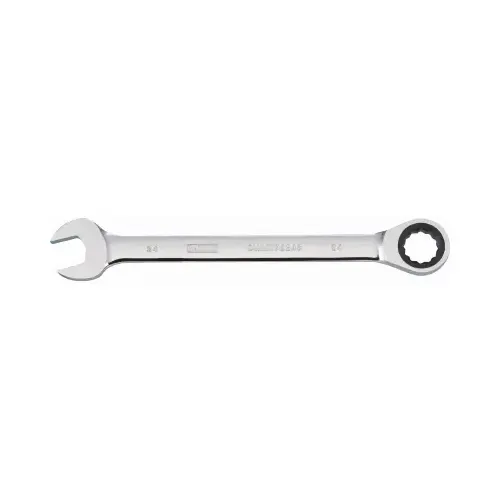 DeWALT Combination Wrench, SAE/Metric: Metric, Head Size: 24 mm, Offset Angle: 15 deg, Box End Thickness: 9/16 in, Box End Width: 1-7/8 in, Open End Thickness: 7/16 in, Open End Width: 2-1/32 in, Comfort-Grip Handle, Chrome, 12-25/32 in L