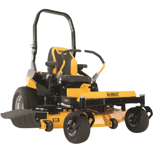 This is what we mean by heavy duty. Built to tackle 4-10 acres with ease, the new DEWALT Z254 54 in. commercial zero-turn mower can take on the big jobs - delivering a consistent, professional-quality cut in challenging conditions and over large areas of land. Every component of this heavy-duty workhorse is designed with the professional in mind. The 24 HP Kawasaki engine offers professional performance with optimal efficiency, while our most powerful transmission delivers up to 500 ft/lbs. of output torque. A durable 1.5 in. x 3 in. tubular steel frame provides maximum strength and rigidity with easy access points for routine maintenance. State-of-the-art wheel and caster designs provides a more professional cut, optimizes trim capabilities, and maintains a smooth ride at higher speeds, while an extra-wide 54 in. cutting deck gets the job done fast. Operators will stay protected over long hours with top-of-the-line ergonomic and customizable comfort features like an automotive-inspired, fully adjustable, padded high-back seat, a dial-in adjustable lap bar, and a wide foot pan. Extremely durable and backed by an industry-leading warranty, this mower is built to stand up to the rigors of daily professional use.