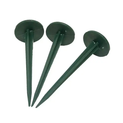 Green Fabric Pins are made from recycled plastic. They are non-corrosive, sturdy, easy to install and reusable. Fabric Pins can be used to secure landscape fabrics, erosion control products and plant protection products. For best results, pins should be spaced every 2 to 3 ft around outside edges. For lighter weight products, it is highly recommended to fold over edge and push pin through double-layered material.