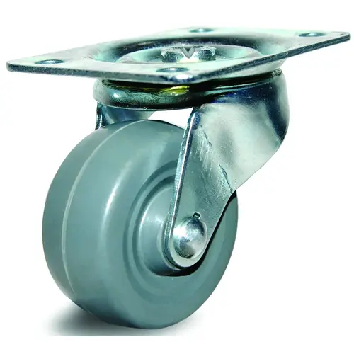 DH CASTERS Swivel Caster, 125 lb Weight, Wheel Diameter: 2 in, Wheel Width: 15/16 in, Wheel Material: Rubber, Swivel Radius: 1-3/4 in, Bearing Type: Single Ball, Bolt Hole Size: 1/4 in, Bolt Hole Spacing: 15/16 x 2-1/8 in, Plate Dimensions: 1-7/8 x 2-9/16 in, Gray, Plate Mounting, Dimensions: 2-7/16 in H