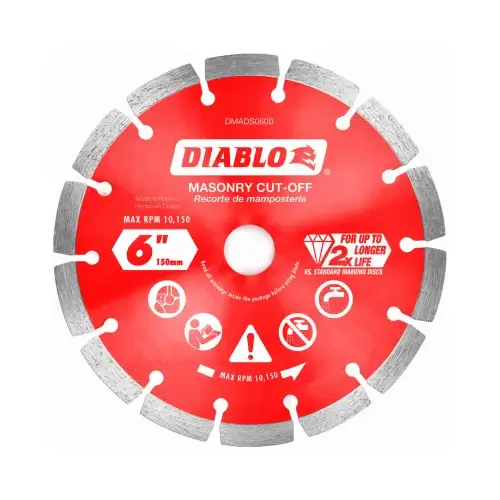 Diablo Saw Blade, Rim Type: Segmented, Cut-Off Disc Blade, 6 in Diameter, Diamond Blade, Applicable Materials: Masonry