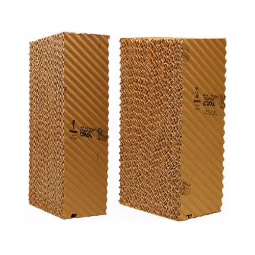 Cellulose base impregnated with plastic resins and anti-rot agents. 50% heavier than paper, holds more water and lasts longer, with high air velocity and fast wet-out. Energy efficient, durable and easy to install.