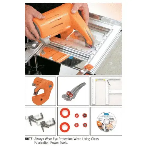 KIT INCLUDES: Diamond Notch and Saw Machine, Standard Blade, Blade Stabilizer with Template Disc, Adjustable Jig Tool with 1/4" (6 mm) Radius Templates, Two Adjustable Clamps, a Set of six Replacement Grommets, and Instructions. Additional replacement parts are also available. We recommend that all electrical glass tools be used with a Cat. No. GF1 Ground Fault Circuit Interrupt Device.