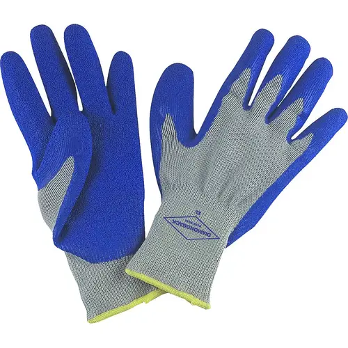 These rubber latex coated palm work glove has a 100% cotton knit liner and wrist cuff. The gloves main material consist of 70% latex and 30% cotton. The knit liner helps to keep the dirt out.