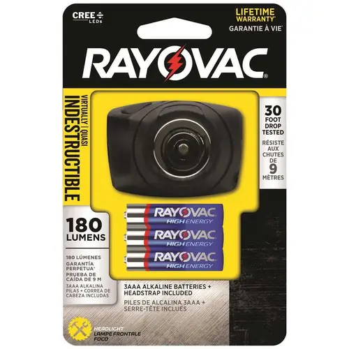 Rayovac DIYHPHL3AAA-BXTB Indestructible Industrial Grade-3 AAA 350 lumens Headlight