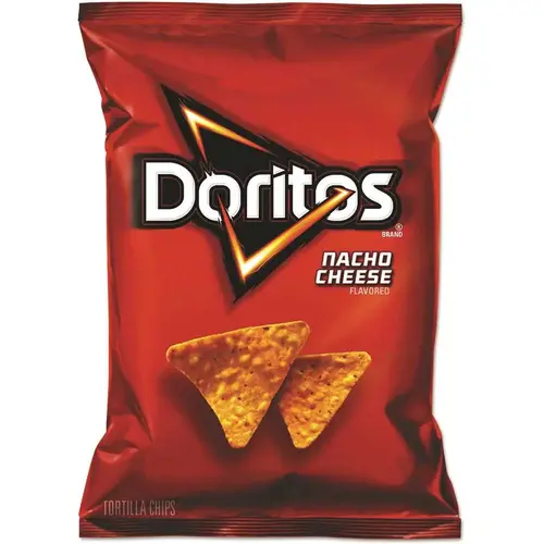 Doritos Nacho Cheese Tortilla Chips. 1.75 Oz. Pkg Of 64. Boldly Seasoned With Three Cheeses, Tomatoes, Onions And A Savory Blend Of Spices. Mfg #LAY44375