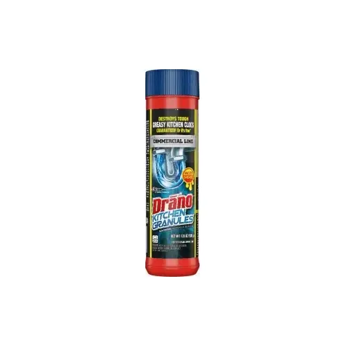 Drano Kitchen Clog Remover, 17.6 oz Net Content, Granules Form, White, Compositions: Sodium Hydroxide, Sodium Chloride