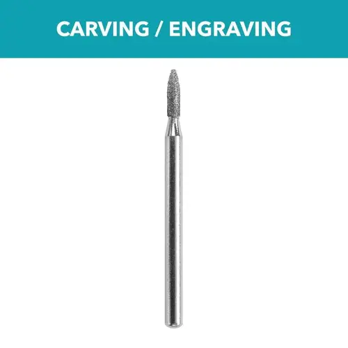 High-speed cutter tipped with diamond particles tapered to a bullet point for fine detail work. Used for engraving carving, finishing and other fine detail work on a variety of materials including wood, glass, ceramic and hardened steel.