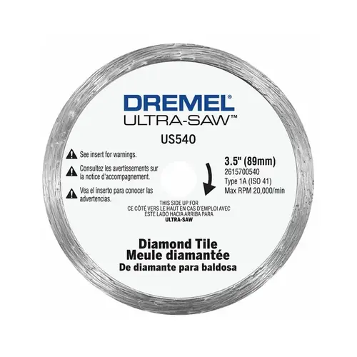 The Dremel US540 Diamond Tile Wheel features a sturdy diamond-grit cutting edge for precision and lasting performance. This wheel is perfect for a variety of tile including floor tile and porcelain. The diamond-grit edge on the UM540 Tile wheel cuts most tiles and masonry materials with ease and precision.