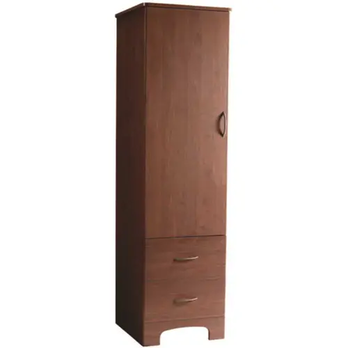 Oslo Wardrobe. Mahogany. 78h X 22w X 23"D. One Door/Two Drawers. Laminate. All Rounded Corners For Safety. Durable Nickel-Plated Hardware. Durable Plastic Floor Glides Facilitate Ease Of Movement And Resist Marring. Locking Top Drawer Closes Softly And Quietly With Precision Engineered Glides. Ventilated Back Allows Air Flow Throughout Cabinet Interior. 5-Year Limited Warranty. Mfg #NOW1D2D-FM